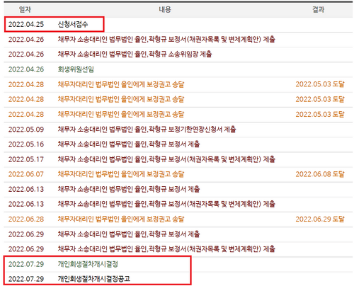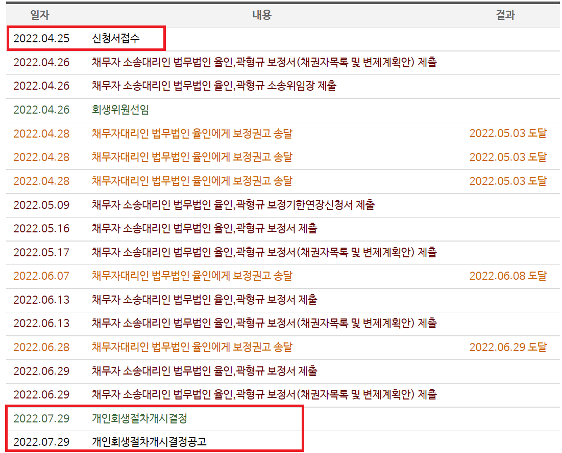 신청후 법원의 보정에 따른 빠른 보정과 서류 제출로 개시결정까지 3개월 만에 진행될 수 있었습니다.